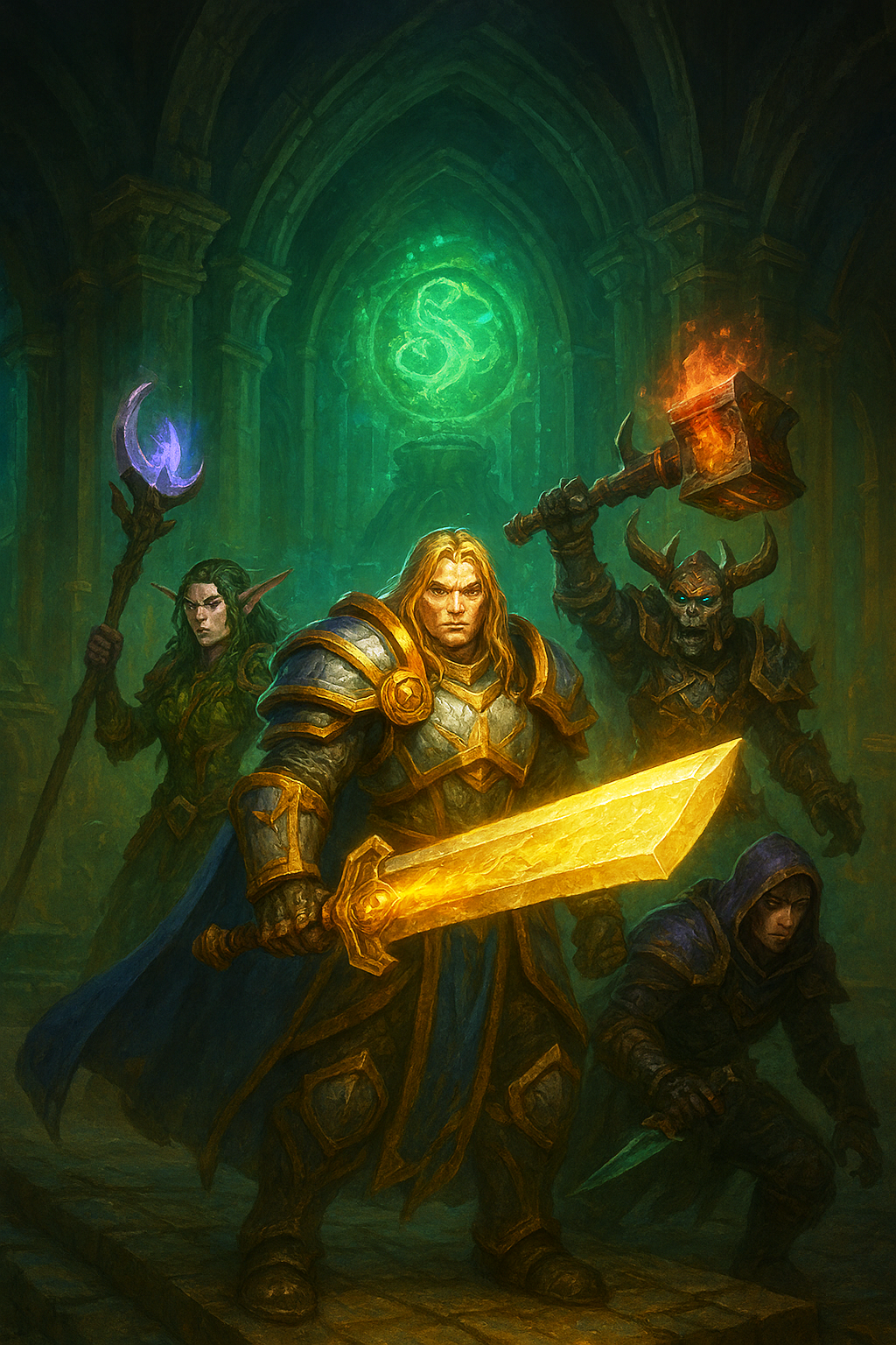 sombre et résolu, son arc prêt à tirer. Autour d’eux, les armées de l’Alliance