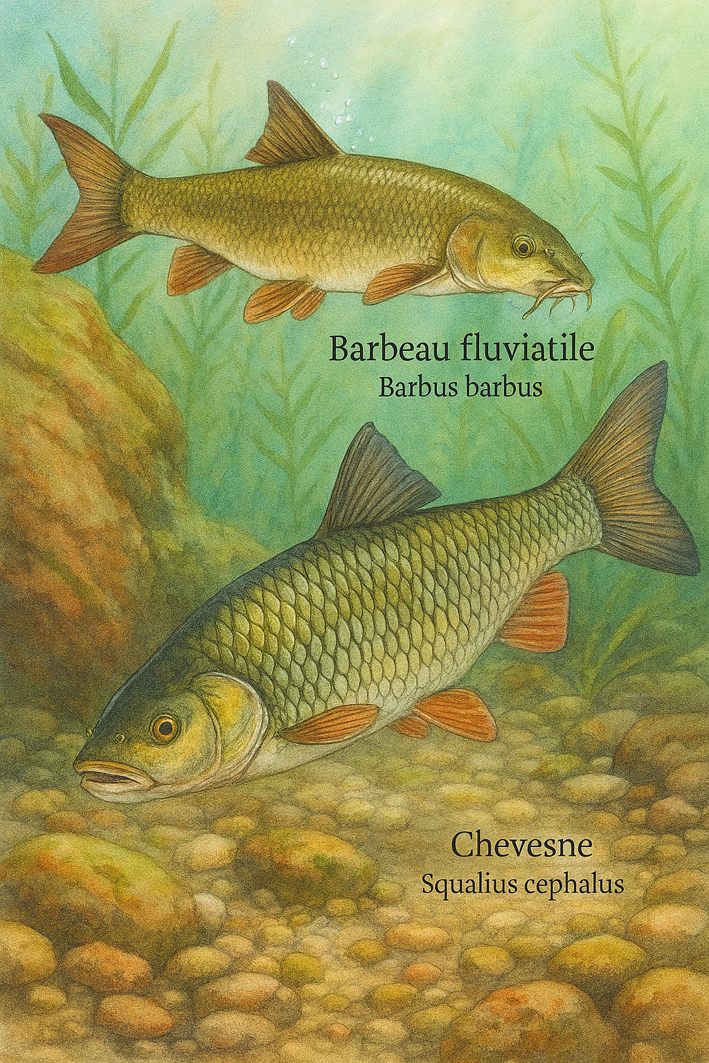 gardon, le chevaine, le barbeau fluviatile et le goujon. Les