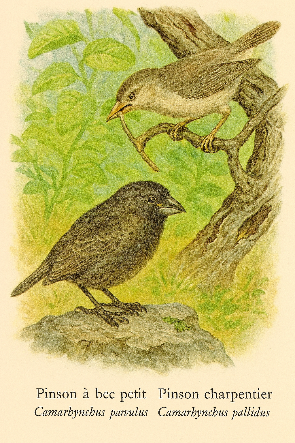 adaptative des pinsons insectivores. Camarhynchus pallidus est plus rare,