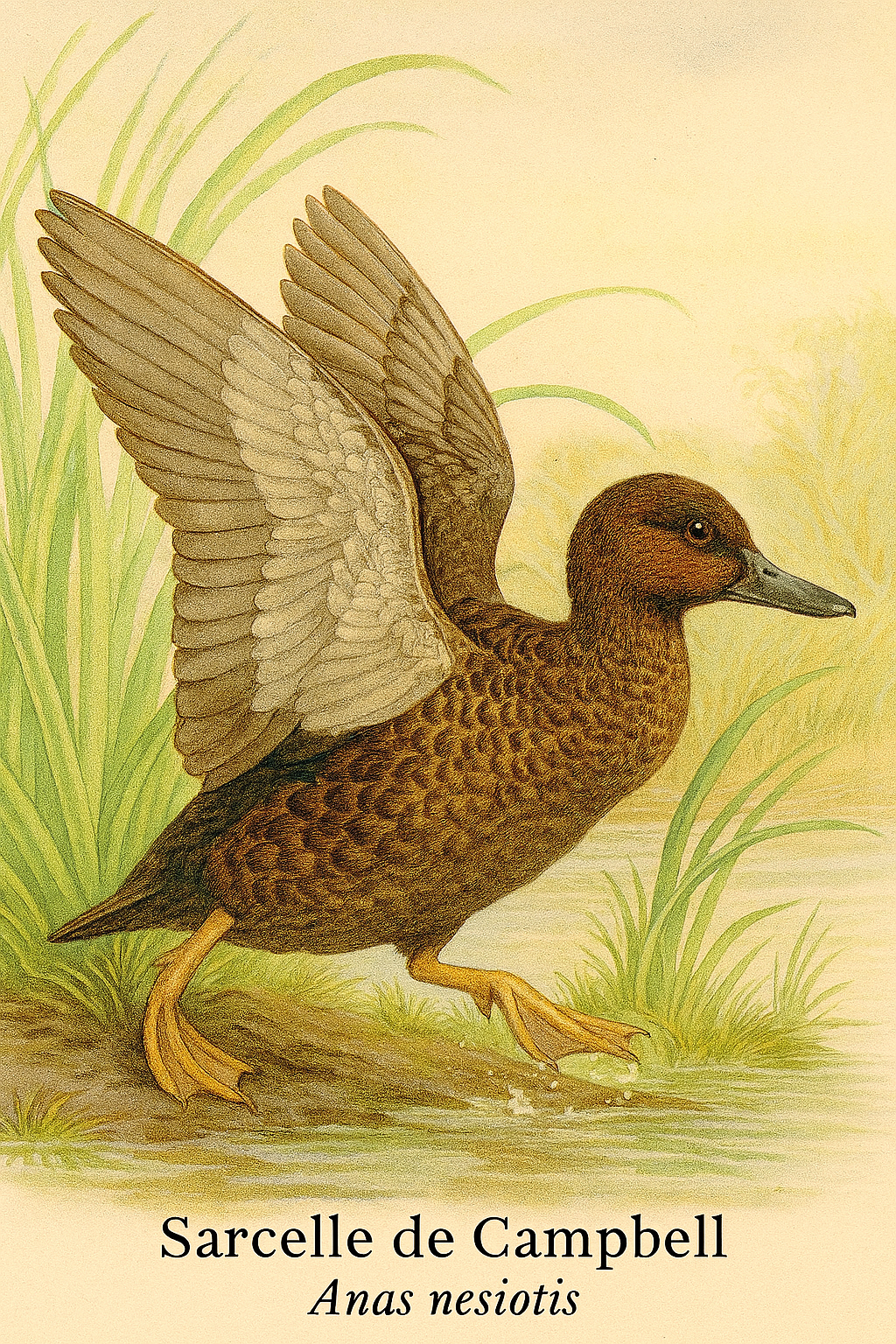 Campbell (Anas nesiotis) est estimée à environ 100 à 200 individus matures.