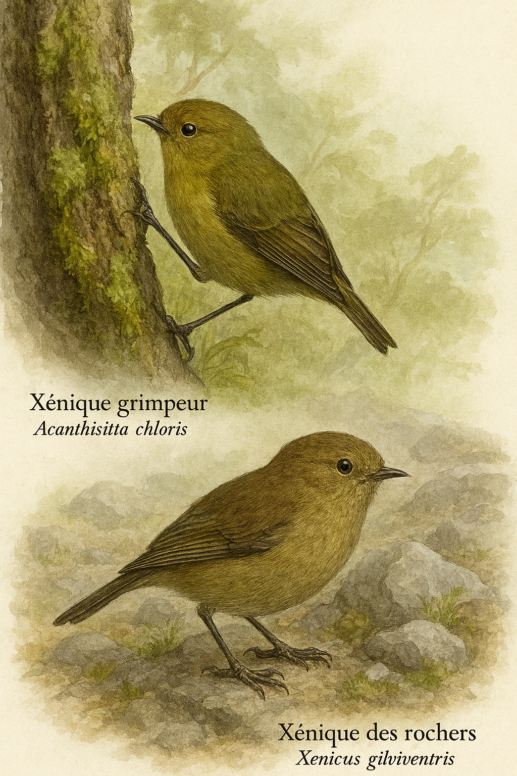 – Xénique grimpeur (espèce encore présente) – Xenicus gilviventris