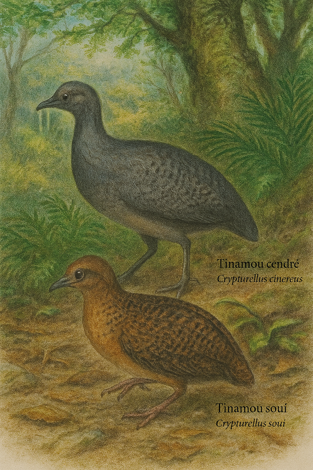 du Sud, appartenant à la famille des Tinamidae, proches des ratites mais