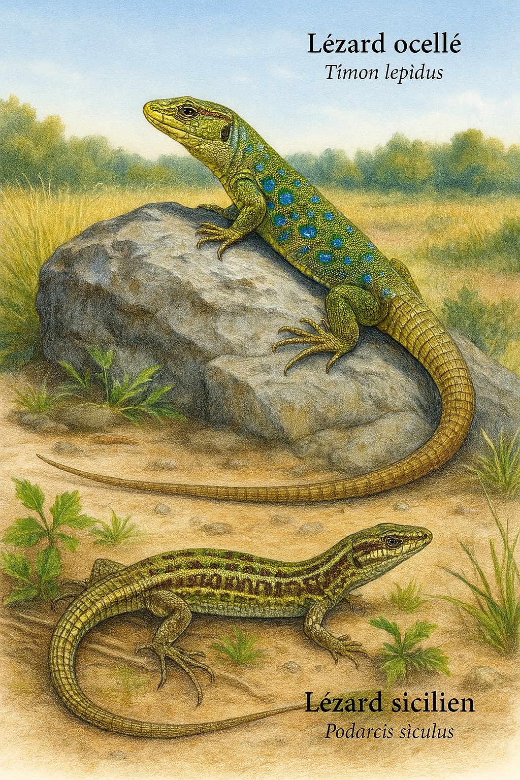 Podarcis muralis et Lacerta bilineata sont très abondants avec des