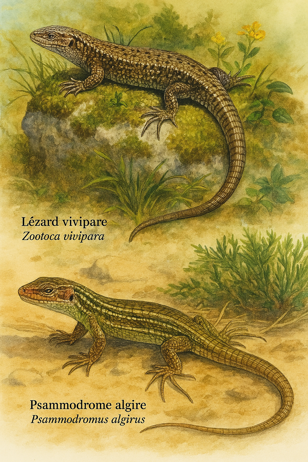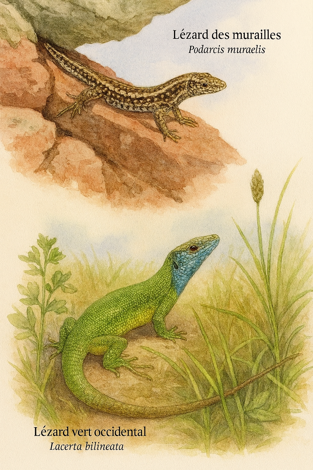massifs alpins. Les espèces les plus communes sont Podarcis muralis et
