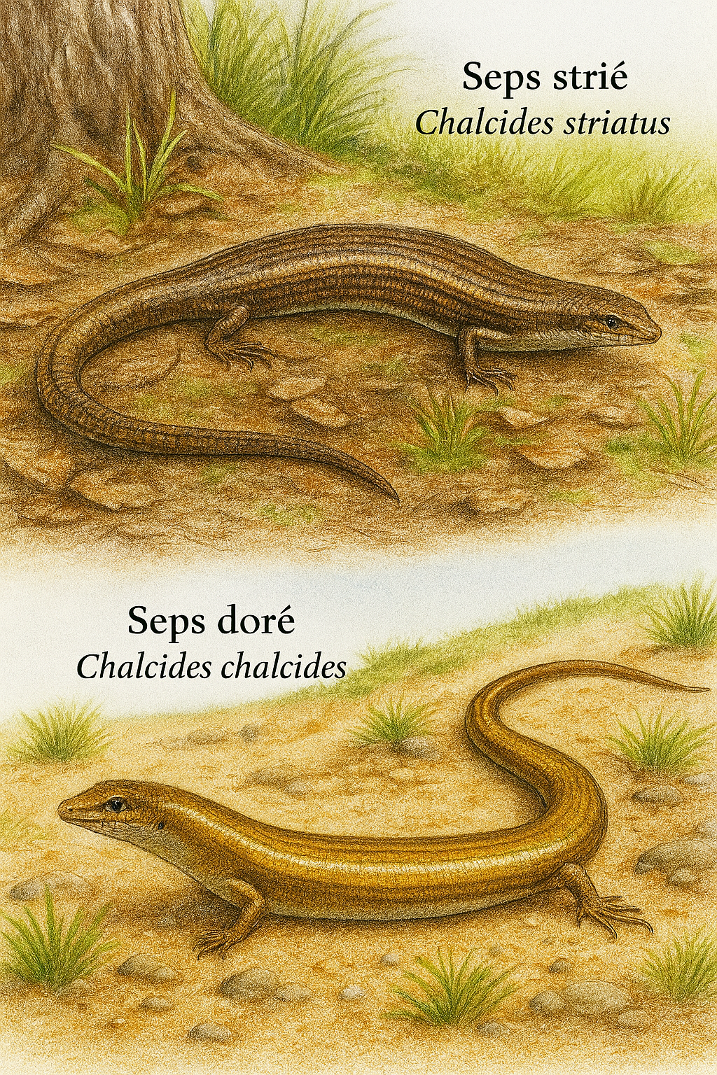 Chalcides striatus, le Scinque ocellé ou Scinque tridactyle. Il