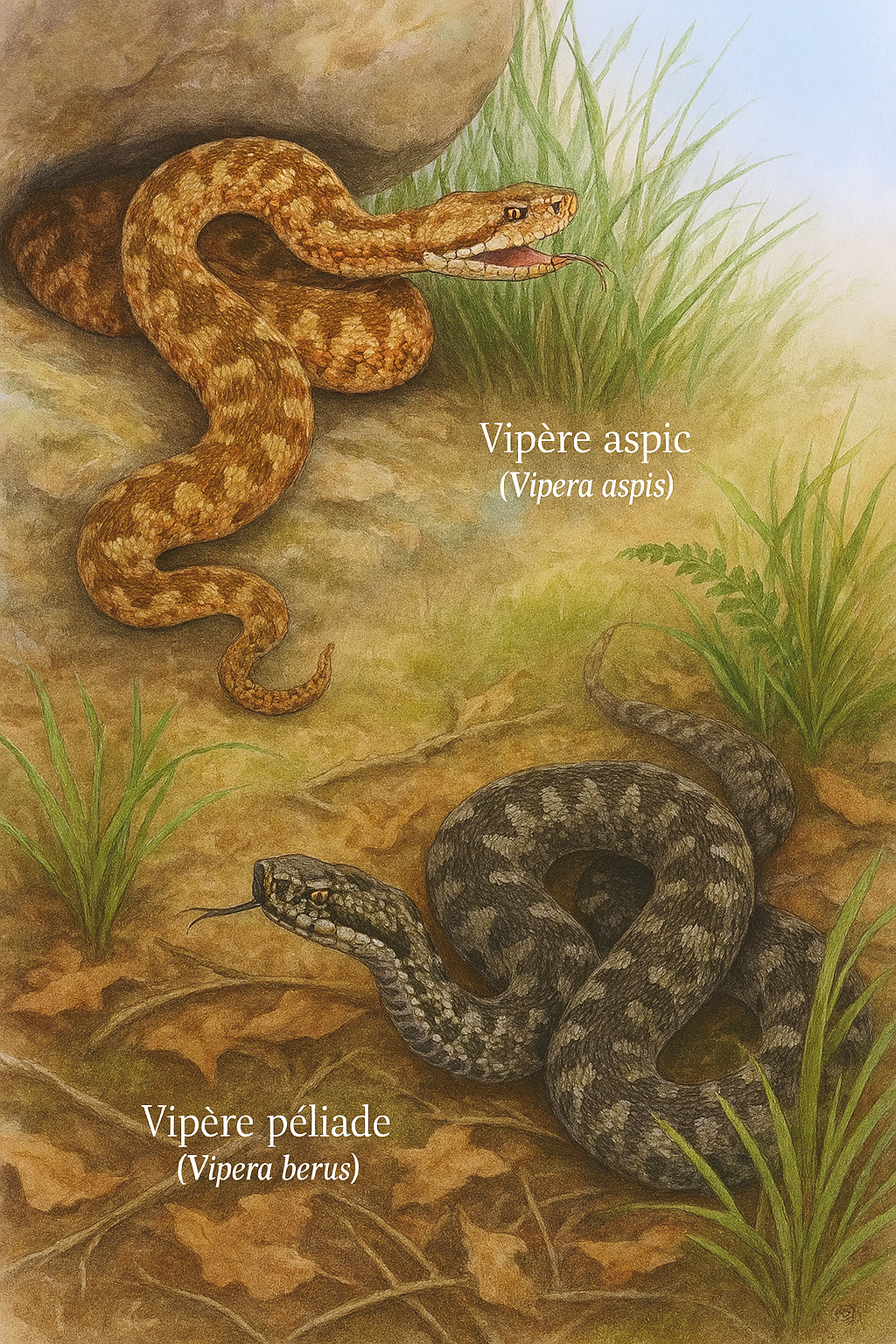 humides selon l’espèce. La vipère aspic privilégie les coteaux