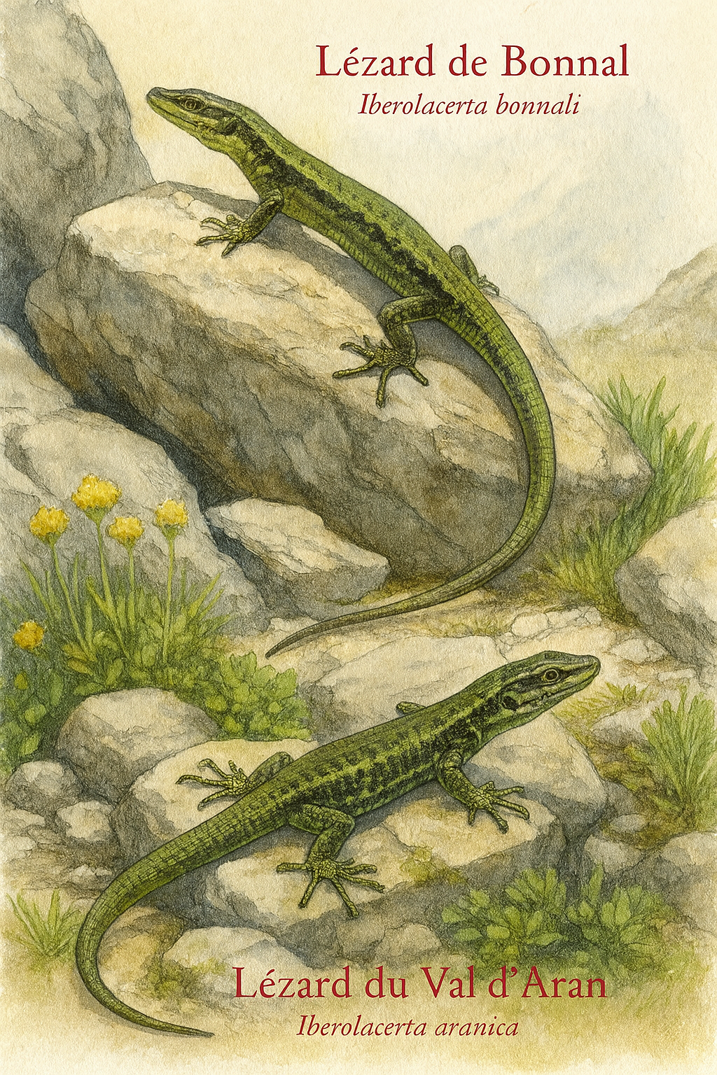 Lacerta bilineata. Les espèces relictuelles comme Iberolacerta bonnali