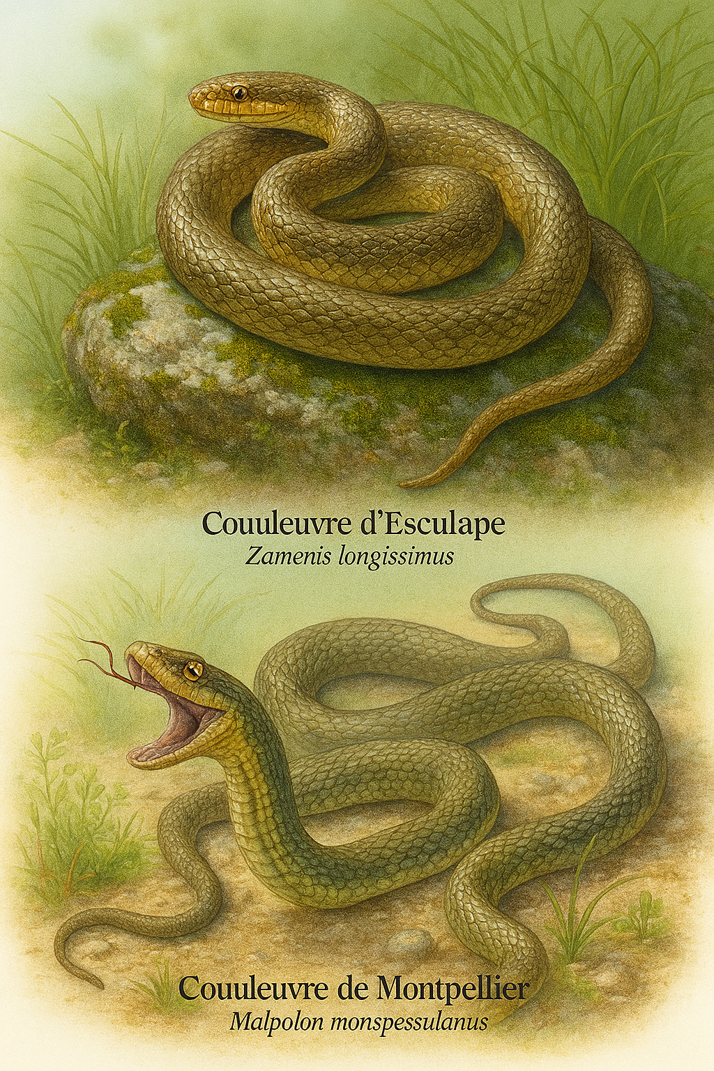 Certaines espèces comme Malpolon monspessulanus possèdent des